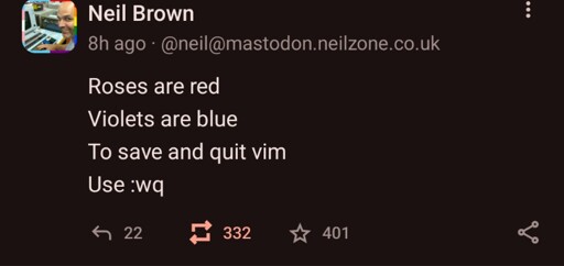 • Everybody uses Arch btw, can’t quit Vim, <loves/tolerates/hates> systemd, and wants to interject for a moment. You can stop now.