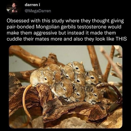 - Testosterone makes the boys more cuddly? Explains a lot. - Roid rage is mostly a myth when it comes to regular T - I know, just didn’t realize it could potentially be the opposite. - Testosterone doesn’t create, it exacerbates. So the cuddly becomes more cuddly