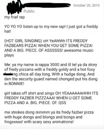 SSUPII@sopuli.xyz to Lemmy Shitpost@lemmy.world · 2 days agofive nights at freddy's rapNSFWsopuli.xyzimagemessage-square8fedilinkarrow-up154arrow-down112