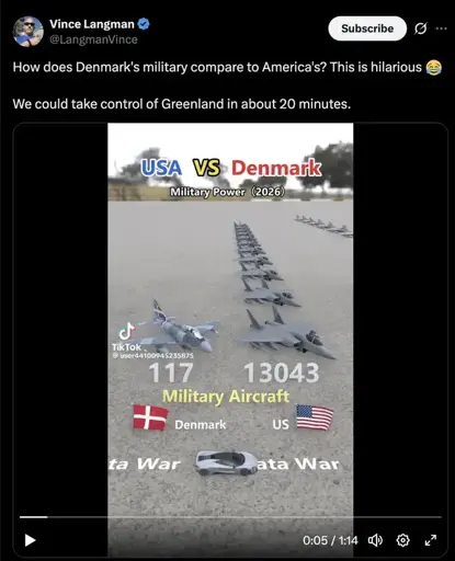I’m 100% confident that Greenland could repel a U.S. invasion based on nothing more than the fact that the U.S.A. has never fought a war in arctic conditions. It’d be like trying to invade Russia in wintertime.
