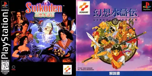 A list of several boxarts for Suikoden: https://gamefaqs.gamespot.com/pc/948855-genso-suikoden/boxes